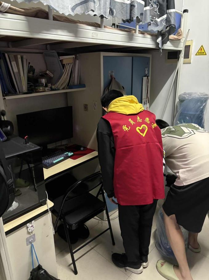 研究生宿舍及相关学生社区,开展排查与清理。志愿者们逐室走访,细致检查卫生死角,协助清理堆积杂物,并对阳台、洗漱间等区域的闲置花盆、水桶、托盘等易积水容器进行翻倒与清理,从源头上阻断蚊虫滋生条件。检查过程中,志愿者们还与留校同学面对面交流,普及个人防护知识,提醒做好健康自测,遇有异常情况及时上报。针对发现的问题,均通过拍照记录、即时反馈的方式督促整改,确保各项措施落到实处。