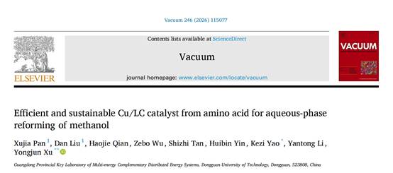 2023级能源动力硕士研究生潘旭佳以第一作者在国际期刊《Vacuum》上发表题为“Efficient and sustainable Cu/LC catalyst from amino acid for aqueous-phase reforming of methanol”学术论文,徐勇军教授为通讯作者,巨乳美女