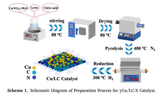 为第一完成单位。研究团队通过设计使用一种氨基酸作为前体并控制热解过程,合成了一种碳基Cu/LC催化剂,该催化剂在低温下甲醇液相重整制氢反应中表现出优异的催化性能。0.67Cu/LC-400催化剂在210 °C时的氢气生成速率高达51.20 μmol·gcat-1·s-1,显著高于大多数铂基和铜基催化剂。表征结果和动力学分析表明,Cu0/Cu+的比例在APRM中的催化活性中起着关键作用。Cu0和Cu+之间存在协同效应,促进了氢气的生成。这项研究提供了一种简便的方法来合成高效、耐久的非贵金属催化剂,展示了通过甲醇液相重整制氢的广阔应用前景。